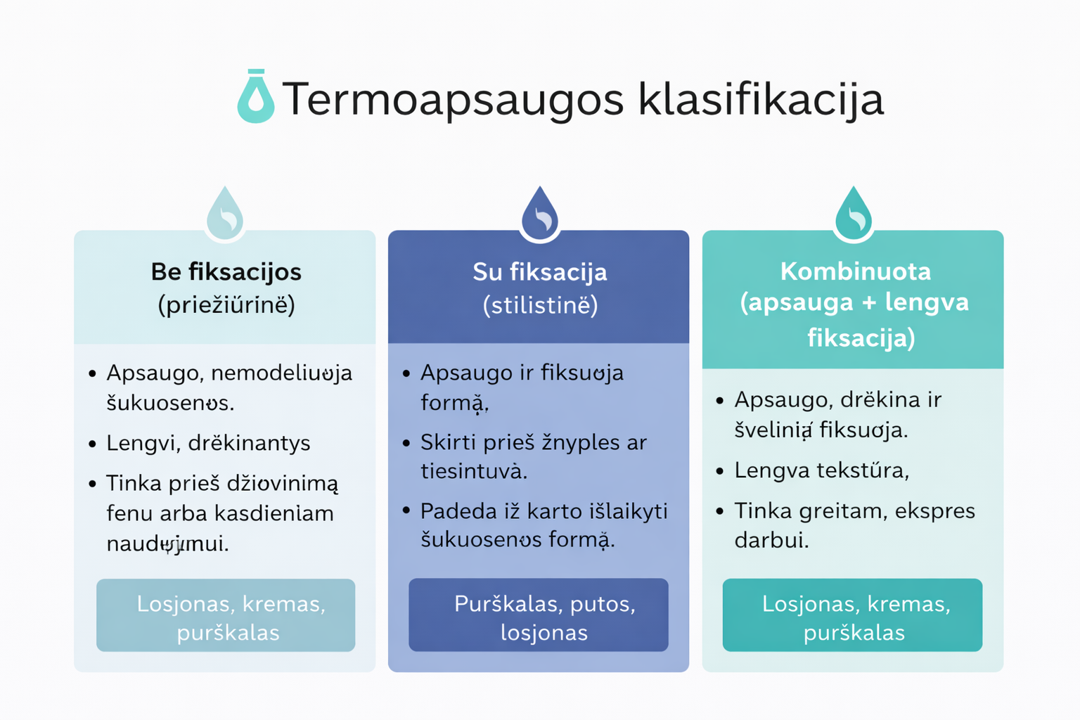 Kaip pasirinkti termoapsaugą pagal plaukų tipą